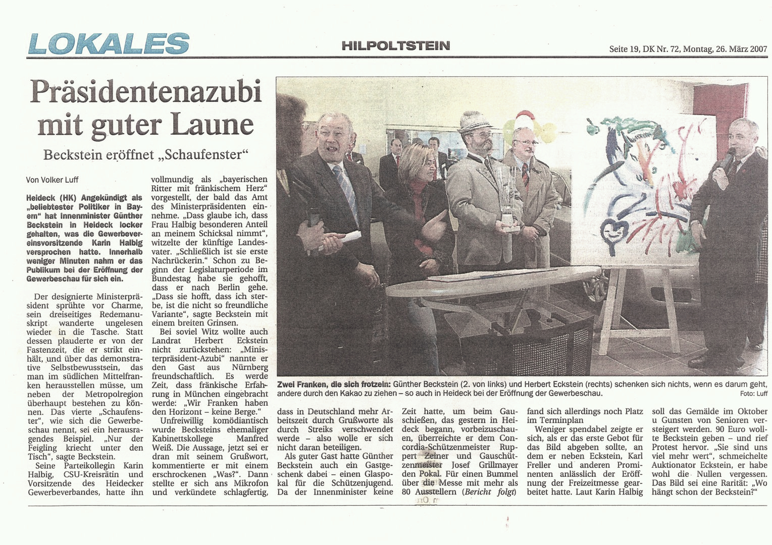 Regie bei einem Gemeinschaftsbild auf der Touristikmesse Nürnberg mit dem damaligen bayerischen Minister Beckstein und anderen, wie beispielsweise der thailändischen Botschafterin Ihre Exzellenz Cholchineepan Chiranond. Darauf folgten weitere Aufträge für Gemeinschaftsbilder mit Prominenten des Landkreises Roth, darunter Landrat Herbert Eckstein.