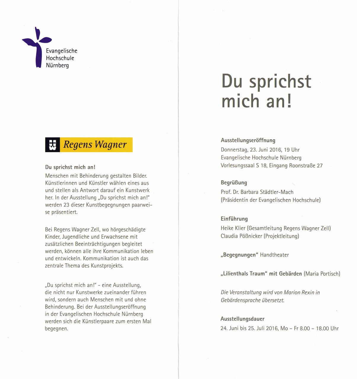Planung und Ausstellung mit Regens Wagner - „Du sprichst mich an!“